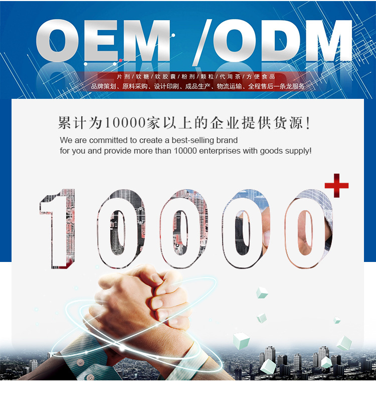 濟(jì)南健源中醫(yī)藥專注膏方膏滋膏劑植物飲料、壓片糖果、固體飲料(顆粒)、凝膠糖果(軟糖、軟)、袋泡茶(代用茶)、方便食品的oem貼牌代加工,公司擁有成熟現(xiàn)貨產(chǎn)品木瓜葛根片、酵素魔芋片、黃精肽片、綜合果蔬酵素粉、黑糖姜茶、蛋白質(zhì)粉、益生菌粉、、維生素軟糖、軟等可批發(fā)、零售采購,并且支持貼牌可定制修改配方允許odm全包。 公司研發(fā)團(tuán)隊(duì)長期從事科研項(xiàng)目并擁有十余項(xiàng)科研成果,在濟(jì)南生命科學(xué)城興建3000平米集研發(fā)—生產(chǎn)—質(zhì)檢—辦公于一體的高新技術(shù)廠區(qū),其中含2000平米gmp凈化認(rèn)證車間紫外線臭氧雙重消毒,每立方米菌落總數(shù)控制在10萬以下,等同于制藥企業(yè)標(biāo)準(zhǔn)。自動化生產(chǎn)線有效的了生產(chǎn)效率,日生產(chǎn)量可達(dá)800萬片,凝膠糖果軟日生產(chǎn)量可達(dá)500萬粒。只需您一個(gè)的要求,我們就可以給您生產(chǎn)出符合你要求的產(chǎn)品。