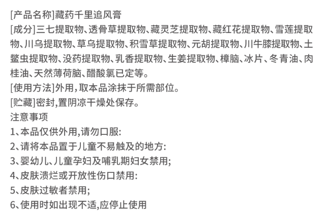 【產(chǎn)品名稱】:藏藥千里追風膏