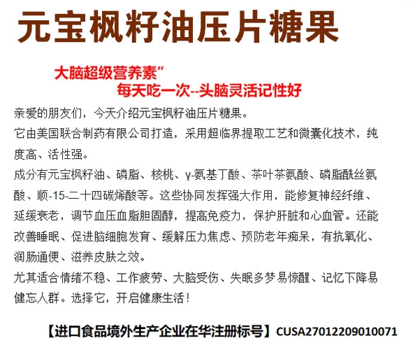 【產(chǎn)品名稱】:元寶楓籽油壓片糖果