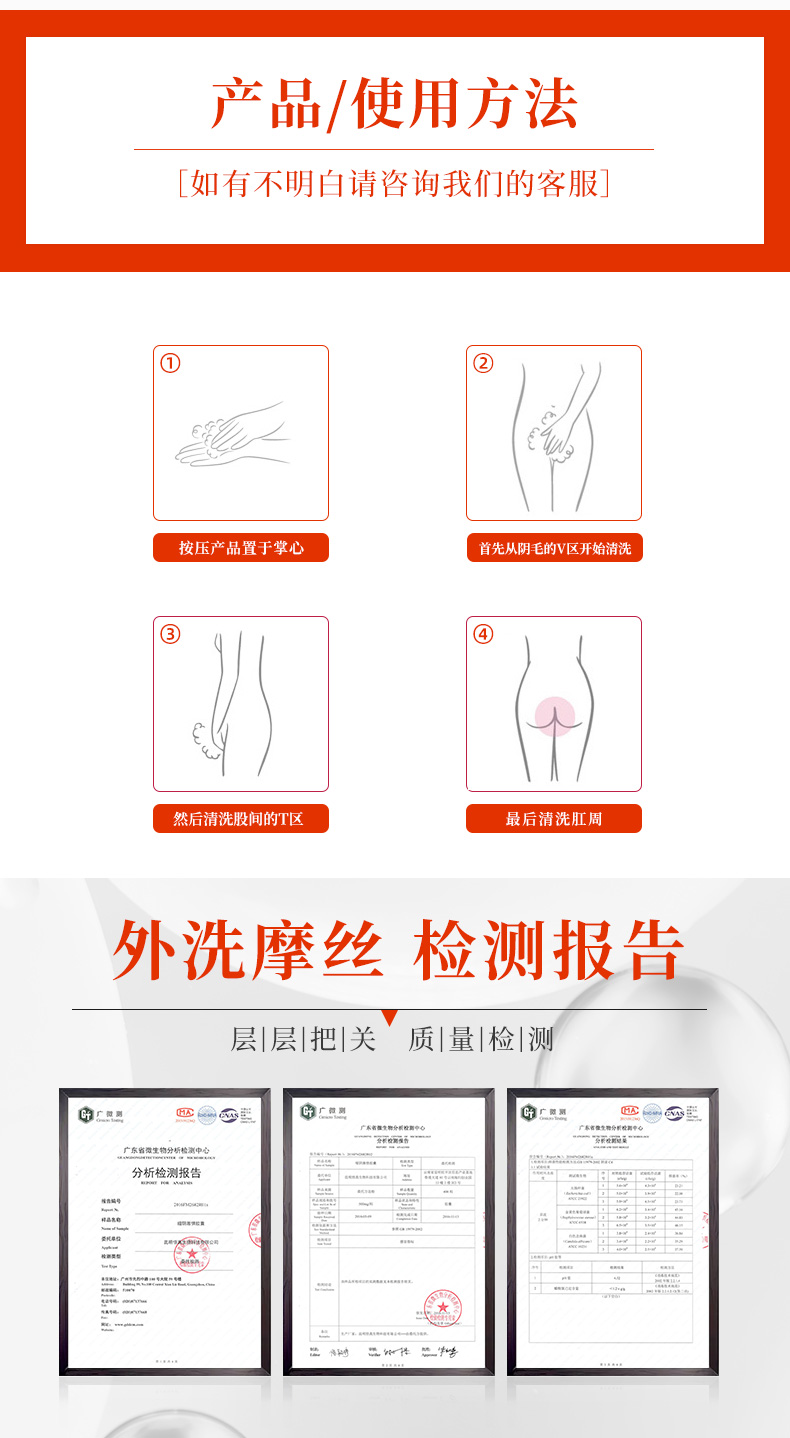 1、溫水潤濕私處,搖勻后噴出泡沫,將泡沫于私處輕輕揉搓2-3分鐘,然后用清水洗凈。