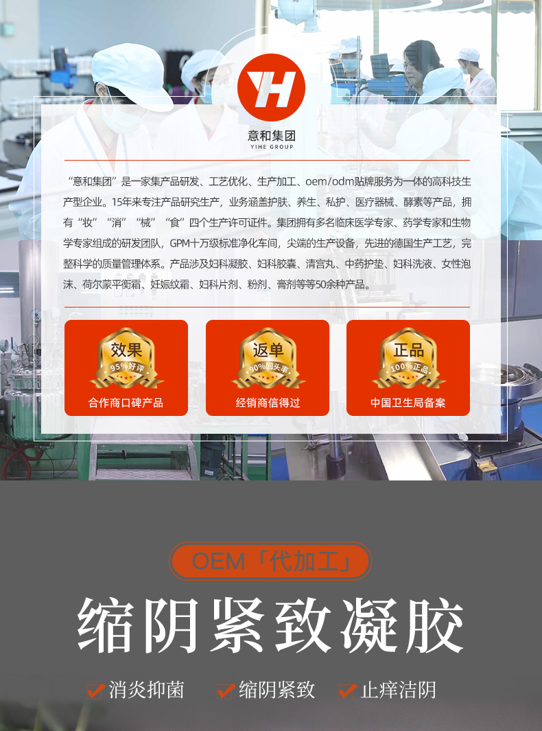 廣州意和生物科技有限公司致力于縮陰致緊凝膠、縮陰液OEM/ODM、女性私密產(chǎn)品、凝膠、中藥護(hù)墊等等專業(yè)代加工生產(chǎn),我們擁有先進(jìn)的設(shè)備,技術(shù)力量雄厚,是目前國內(nèi)外、專業(yè)的無菌生產(chǎn)線,產(chǎn)品生產(chǎn)過程的乳化、消毒、灌裝等實(shí)現(xiàn)封閉式生產(chǎn)流程,在業(yè)內(nèi)已有良好的口碑,大力開拓國內(nèi)外OEM/ODM業(yè)務(wù),在確?蛻魮碛挟a(chǎn)品配方核心技術(shù)的前提下,縮陰液加工流程,務(wù)求為其營選一個(gè)良好的市場競爭氛圍,使客戶獲取更豐厚的長遠(yuǎn)利益。在護(hù)膚品的領(lǐng)域中,我們將通過不斷的創(chuàng)新和努力,以我們的技術(shù)、生產(chǎn)設(shè)備、信譽(yù)保證,為您創(chuàng)造的品牌!
